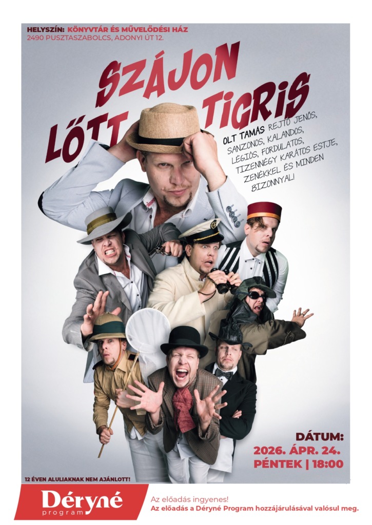 Rejtő Jenő estMindenkit sok szeretettel várunk április 24-én 18 órától! Bartók András2026-04-15T12:31:16+00:00 Ajánlott bejegyzések április 15th, 2026 | 0 hozzászólás Költészet Napja 2026 április 9th, 2026 | 0 hozzászólás Advent 2025 november 21st, 2025 | 0 hozzászólás Idősek Világnapja szeptember 26th, 2025 | 0 hozzászólás Meseterápia szeptember 26th, 2025 | 0 hozzászólás